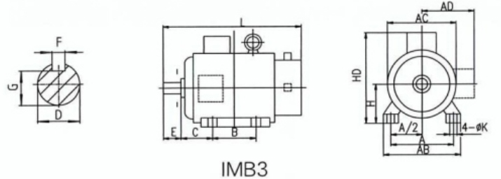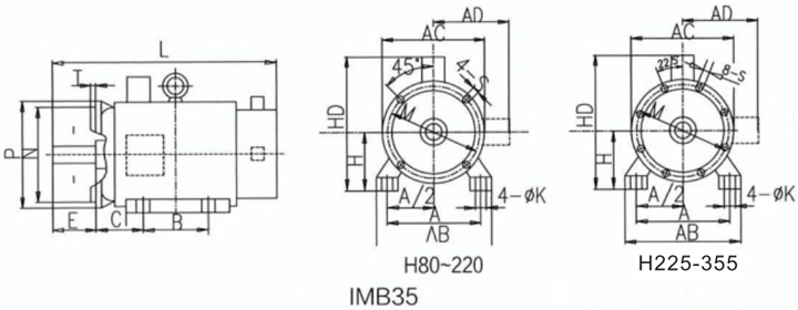 YVF2系列變頻調(diào)速三相異步電動(dòng)機(jī)安裝及外形尺寸圖